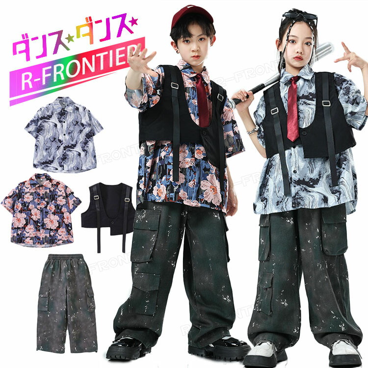 ジャズダンス 衣装 - 韓国 -衣装 ダンス 花柄シャツ 大きめ ヒップポップ トップス パンツ かっこいい オーパーサイズ 100 110 120 130 140 1