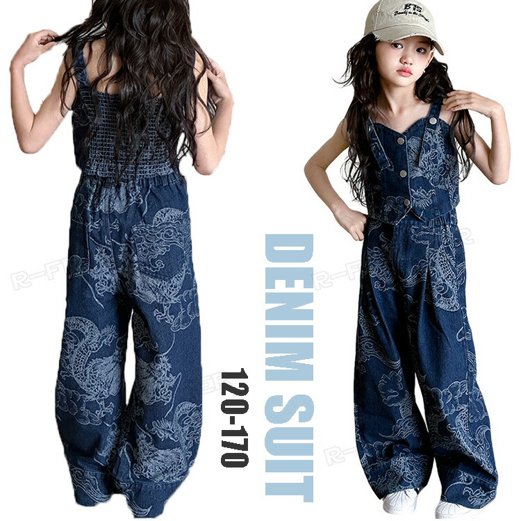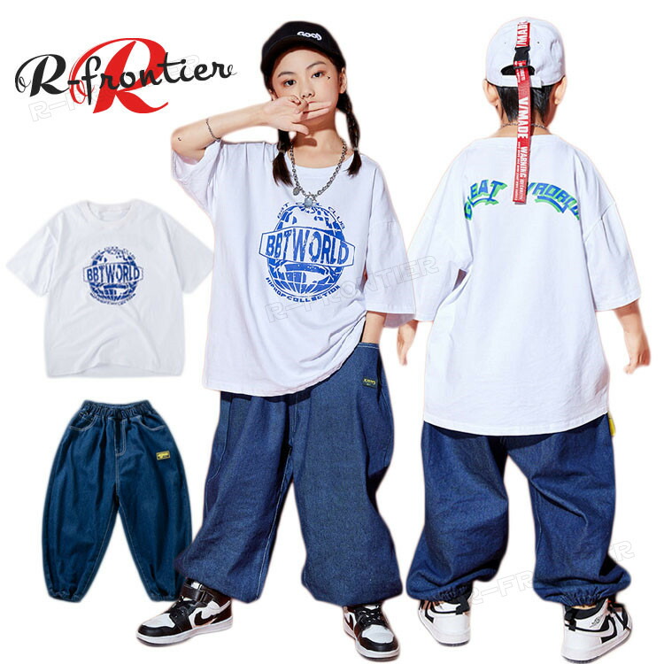 ダンス 衣装 ヒップホップ キッズ 青 デニムパンツ セットアップ 女の子 男の子 かっこいい 韓国 -衣装 ジュニア 子供 イベント 発表会 演出服 応援 120 180