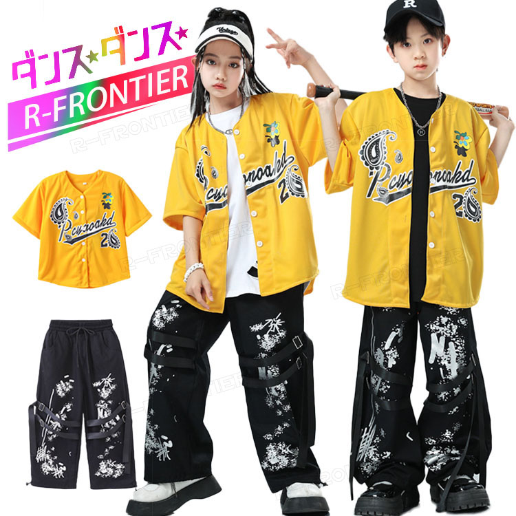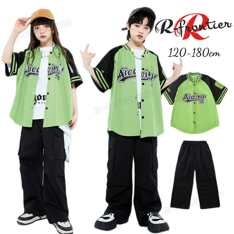 ベースボールシャツ キッズ ダンス衣装 ヒップホップ キッズ 黒 カーゴパンツ セットアップ 女の子 男の子 かっこいい 韓国 -衣装 子供 イベント 発表会 演出服 応援 12