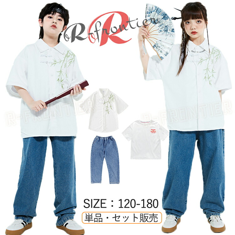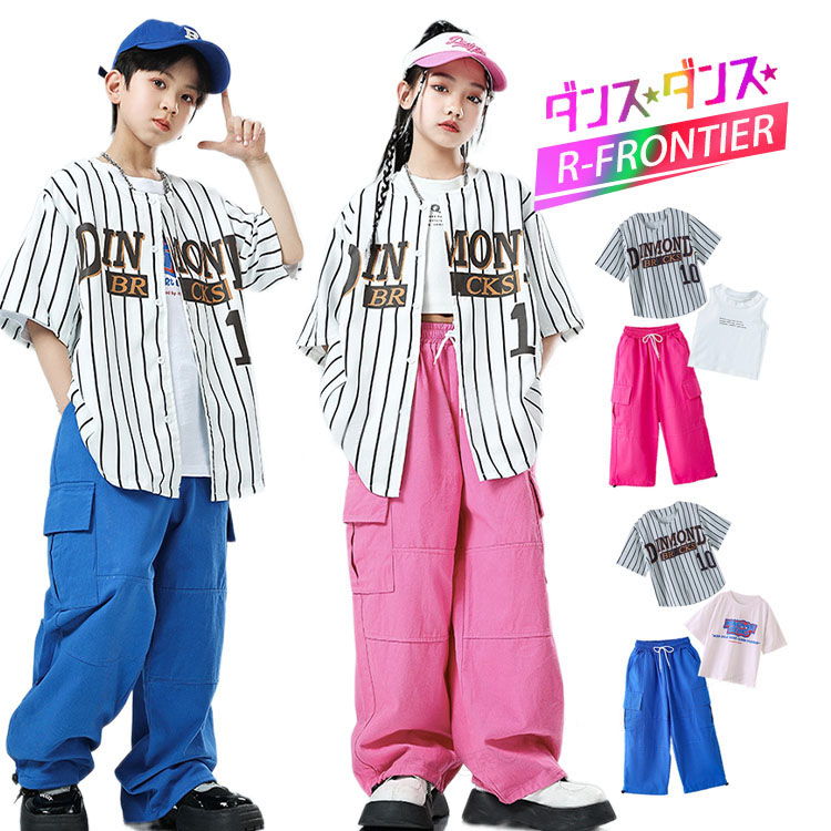 ダンス衣装 キッズ 上下セット カーゴパンツ シャツ 韓国 ヒップホップ ジャズダンス 演出服 応援団 練習着 110-180