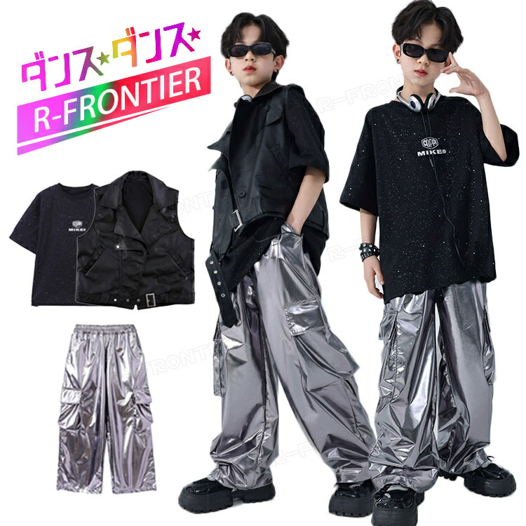 ダンス衣装 キッズ セットアップ シャツ ベスト ダンスパンツ ゆったり ヒップホップ 団体 ダンス衣装 女の子 イベント 120 120 130 140 150 160 170 18