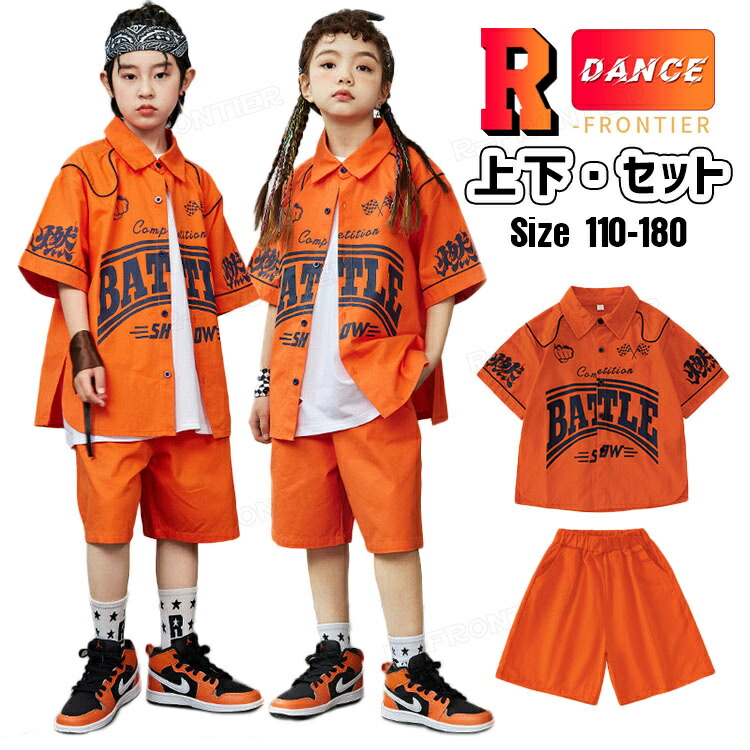 ダンス衣装 キッズ ユニセックス オレンジ トップス ハーフパンツ HIPHOP ユニセックス ステージ衣装 子供 練習着 韓国 発表会 人気 おしゃれ 韓国 かっこいい 派手 110-180cm