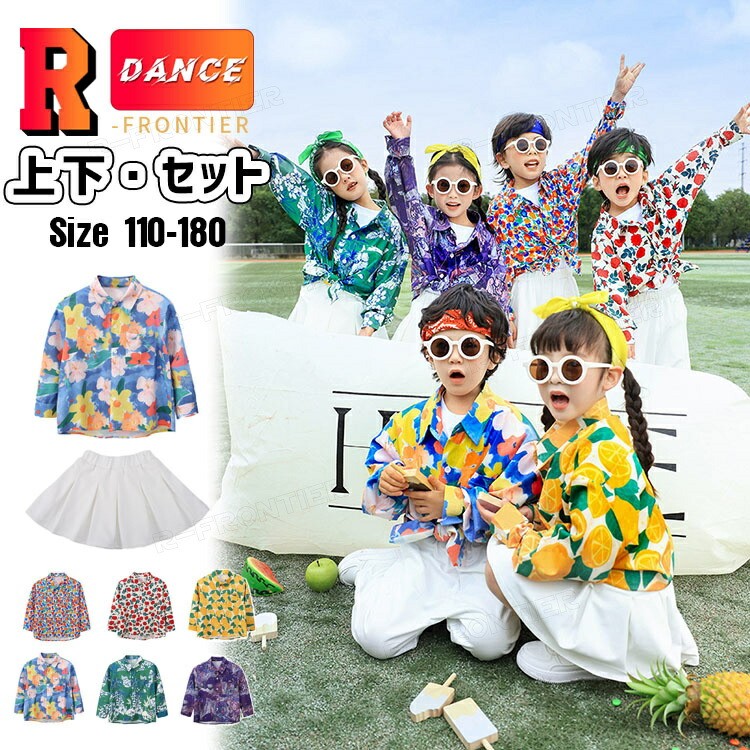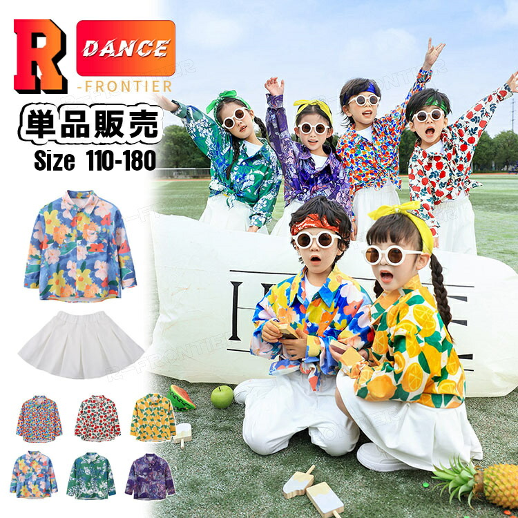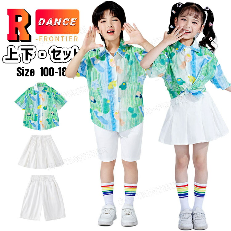 ダンス衣装 キッズ ユニセックス 柄シャツ 白パンツ スカート トップス ユニセックス ステージ衣装 子供 練習着 韓国 発表会 人気 おしゃれ 韓国 かっこいい 派手 110-180