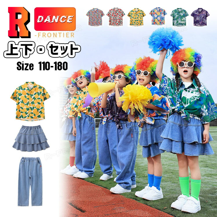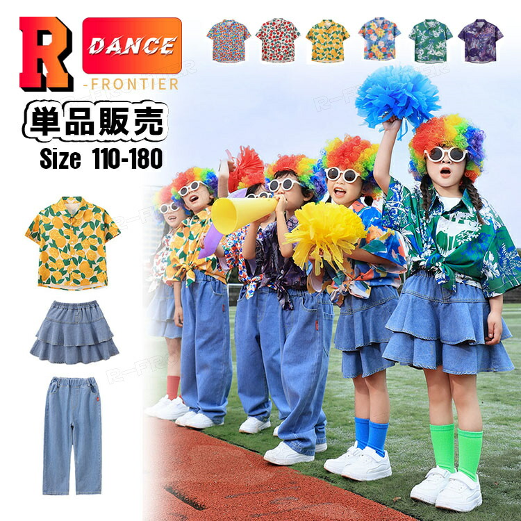 ダンス衣装 キッズ ユニセックス 柄シャツ デニムパンツ トップス HIPHOP ユニセックス ステージ衣装 子供 練習着 韓国 発表会 人気 おしゃれ 韓国 かっこいい 派手 110-180cm