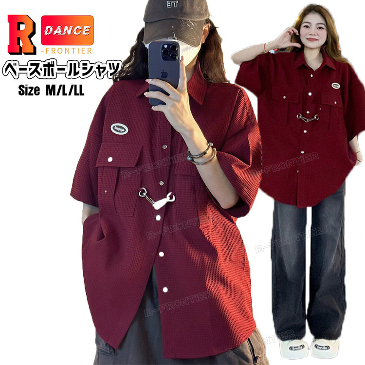 赤 ダンス 衣装 韓国 - ヒップホップ ベースボールシャツ レディース 大人 赤 韓国 ダンス 衣装 ジャズダンス 衣装 ヒップホップ ダンスウェア