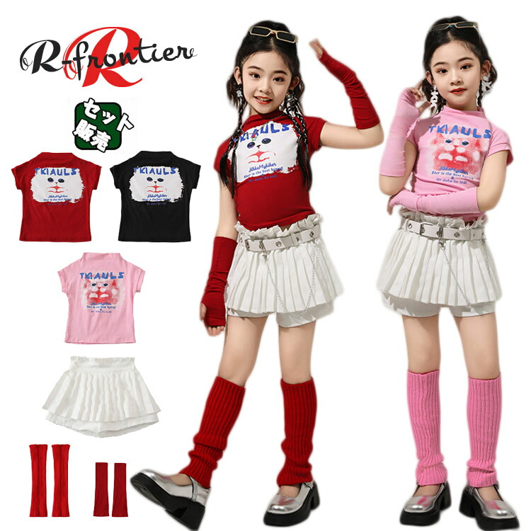 ダンス衣装 赤 黒 ヒップホップ キッズ 女の子 白キュロット かっこいい セットアップ ジャズダンス 韓国 -衣装 赤シャツ 子供 イベント 発表会 演出服 応援 110 18