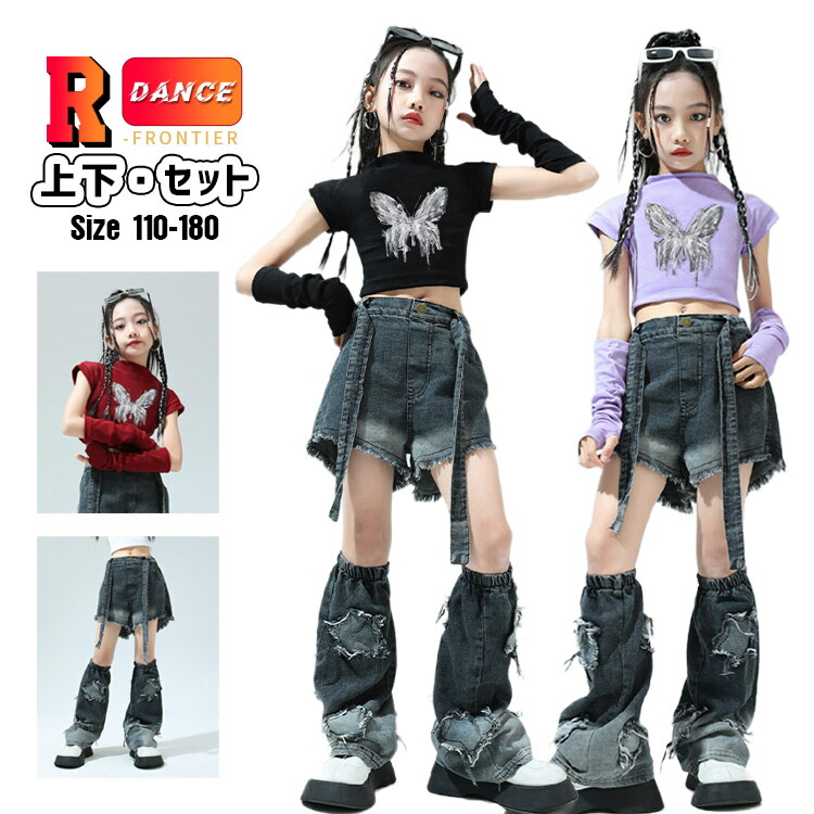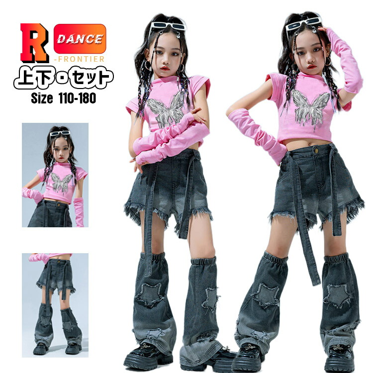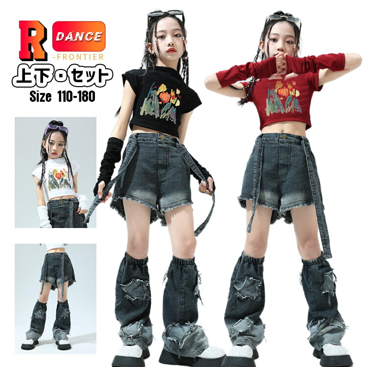 ダンス トップス へそ出し キッズ 女の子 かっこいい デニムパンツ レッグカバー 韓国 -衣装 ヒップホップ ジャズダンス 団体 演出服 応援団 イベント 110-180