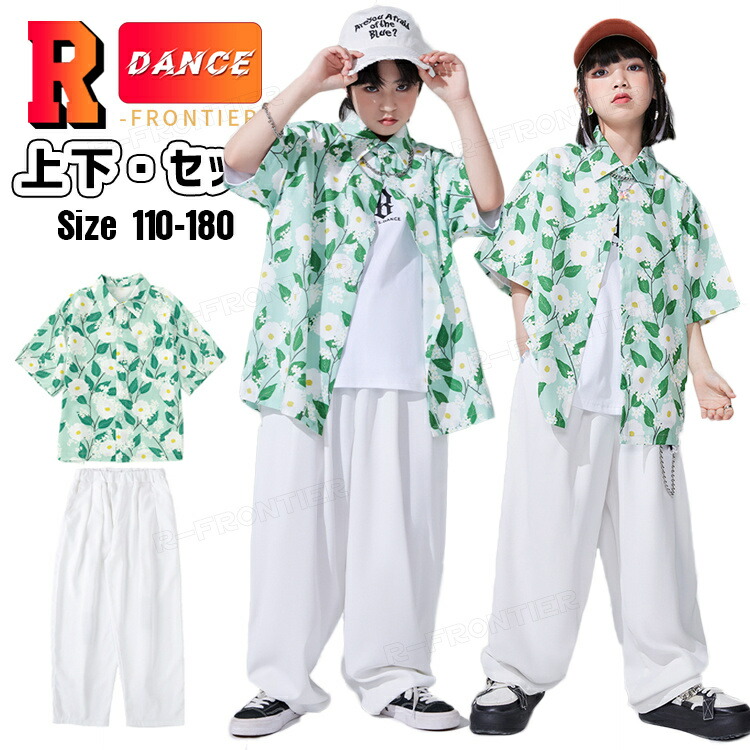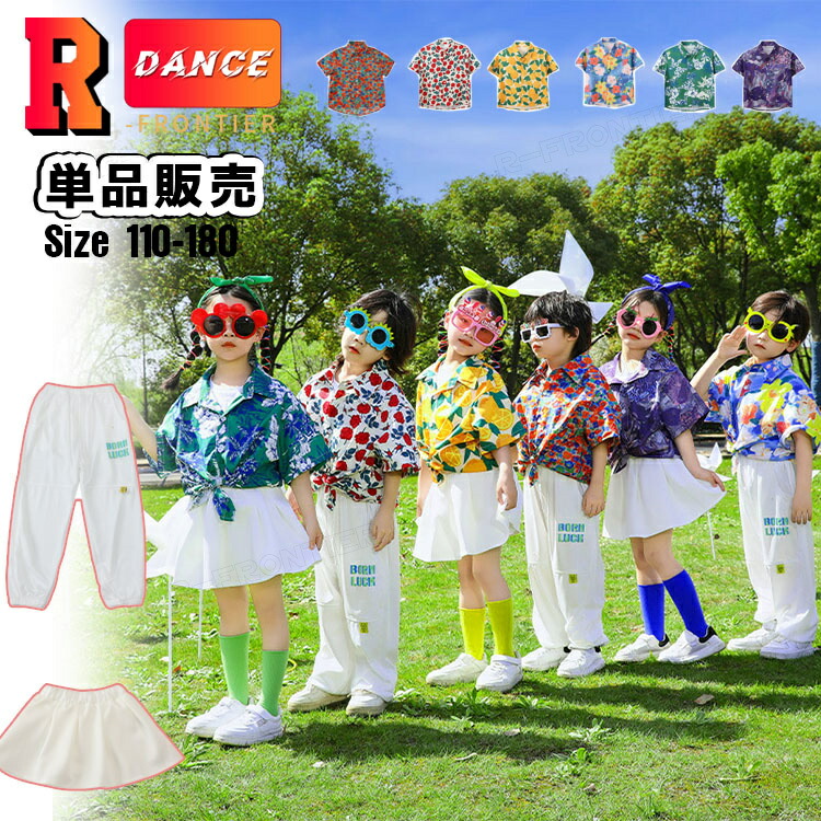 ダンス衣装 キッズ ユニセックス 柄シャツ 白パンツ スカート トップス ユニセックス ステージ衣装 子供 練習着 韓国 発表会 人気 おしゃれ 韓国 かっこいい 派手 110-180
