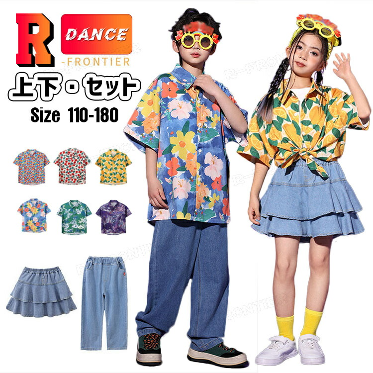 ダンス衣装 キッズ ユニセックス 柄シャツ デニムパンツ トップス ユニセックス ステージ衣装 子供 練習着 韓国 発表会 人気 おしゃれ 韓国 かっこいい 派手 110-180