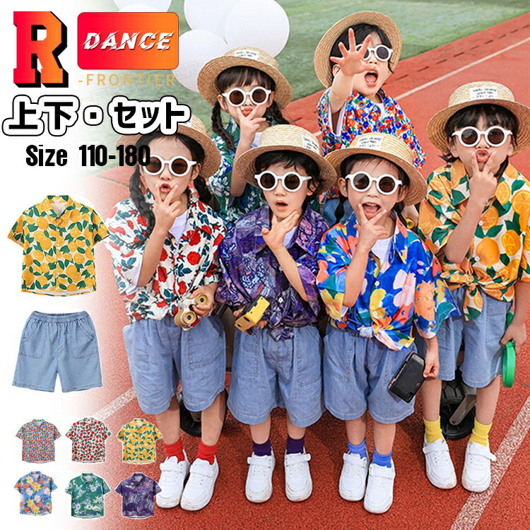 ダンス衣装 キッズ セットアップ 柄シャツ 白パンツ ダンストップス ユニセックス ステージ衣装 子供 練習着 韓国 発表会 人気 おしゃれ 韓国 かっこいい 派手 110-180