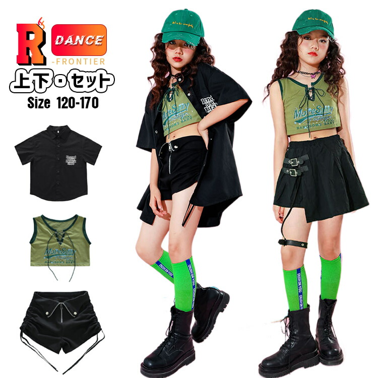 ダンス衣装 キッズ セットアップ へそ出しトップス スカート タンクトップ ジャズダンス ガールズ 韓国 ヒップホップ hiphop セットアップ 演出服 応援団 練習着 110-180cm