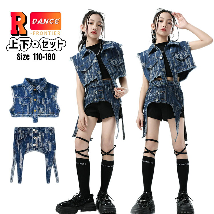 虹色 ダンス衣装 子供 デニムパンツ スカート セットアップ キッズ チアダンス ヒップホップ 男の子 女の子 子供 韓国 ダンス衣装 100 110 120 130 140 150 1