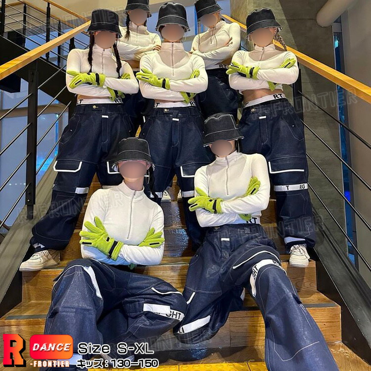 虹色 ダンス衣装 子供 デニムパンツ スカート セットアップ キッズ チアダンス ヒップホップ 男の子 女の子 子供 HIPHOP 韓国 ダンス衣装 100 110 120 130 140 150 1