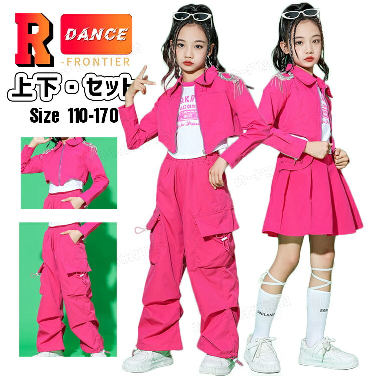 ダンス衣装 キッズ ヒップホップ セットアップ 女の子 ピンク ガールズ ジャケット へそ出し トップス カーゴパンツ ゆったり ジュニア ダンスウエア 韓国 子供服