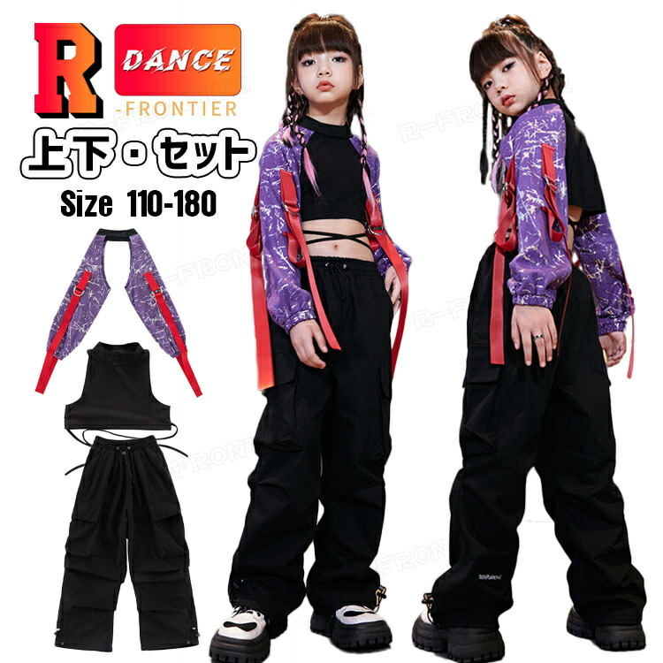 ダンス衣装 キッズ ヒップホップ セットアップ 女の子 ガールズ へそ出し トップス カーゴパンツ ゆったり ジュニア ダンスウエア 韓国 子供服