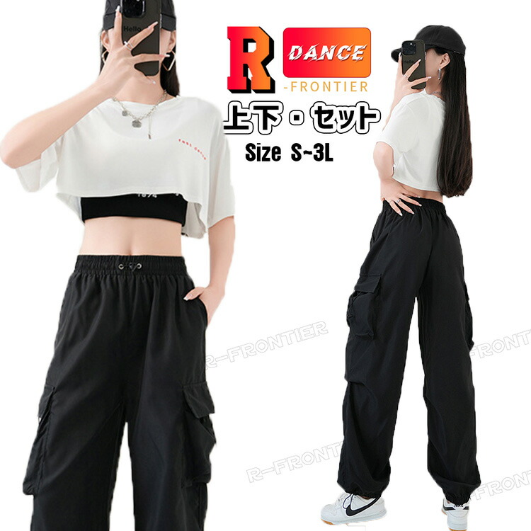 レディース ダンス衣装 セットアップ ジャズ ヒップホップ 演出服 ダンスへそ出し トップス カーゴパンツ