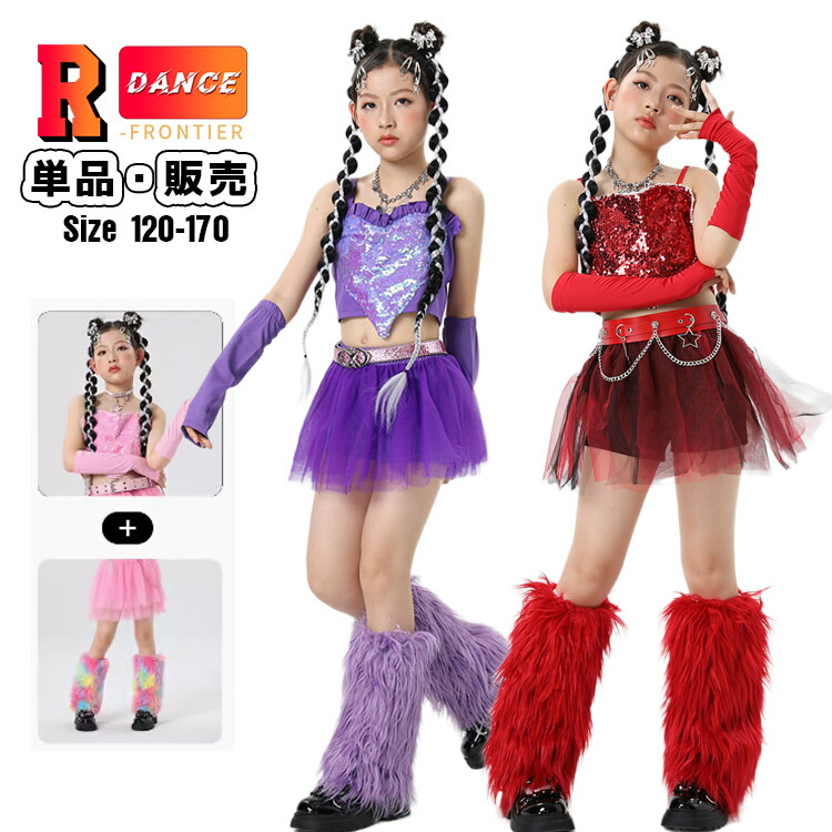 ダンス トップス へそ出し キッズ 女の子 かっこいい スパンコール 紫 タンクトップ レッグカバー 韓国 -衣装 ヒップホップ ジャズダンス 演出服 応援団 イベント 120-