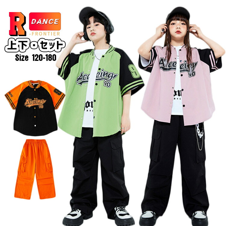 ダンス 衣装 ヒップホップ キッズ オレジン パンツ セットアップ 女の子 男の子 ベースボールシャツ 韓国 -衣装 かっこいい ジュニア 子供 イベント 発表会 演出服 応援