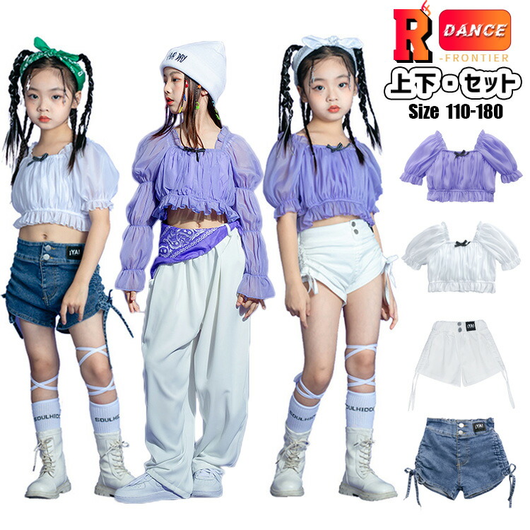 ダンス衣装 キッズヒップホップ セットアップ 女の子 男の子 かっこいい 半袖 白シャツ 白スカート 韓国 ジャズダンス 団体 演出服 応援団 イベント 110-180