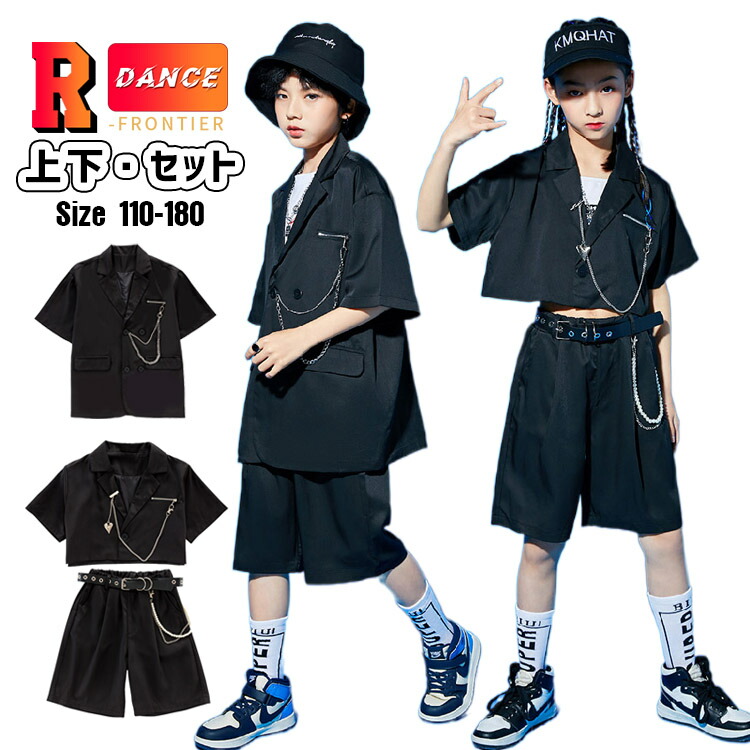 キッズ ダンス衣装 ヒップホップ セットアップ へそ出し トップス 女の子 男の子 かっこいい 半袖 ワイドパンツ 黒 韓国 ジャズダンス 団体 演出服 応援団 イベント 110-180