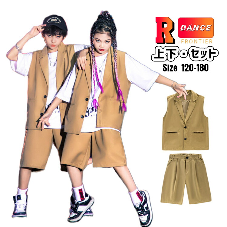 キッズ ダンス衣装 ヒップホップ 茶色 ベスト セットアップ 女の子 男の子 かっこいい 半袖 ワイドパンツ 韓国 ジャズダンス 団体 HIPHOP 演出服 応援団 イベント 120-180cm