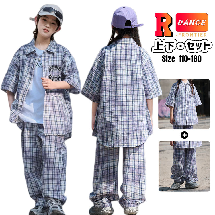 ダンス衣装 ヒップホップ キッズ チェック柄パンツ セットアップ 女の子 男の子 かっこいい 半袖 ワイドパンツ 韓国 ジャズダンス 団体 演出服 応援団 イベント 110-180