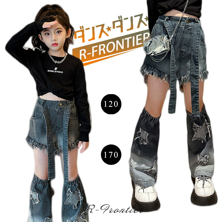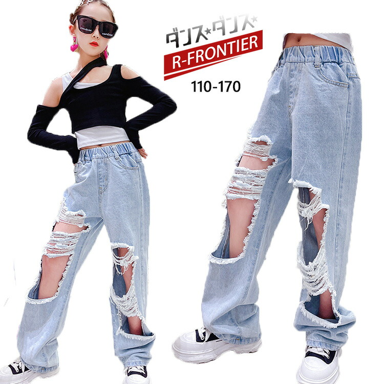 ダメージパンツ キッズダンス衣装 デニム セットアップ 女の子 へそ出し トップス レッグウォーマー ヒップホップ 韓国 k-pop衣装 かっこいい 子供 イベント 発表会 演出服 120 170