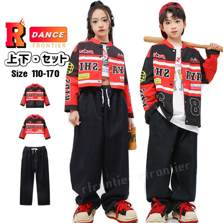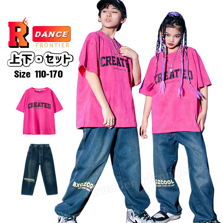 キッズ ダンス 衣装 デニムパンツ ダンスパンツ tシャツ 赤 トップス ヒップホップ 団体 hiphop ダンス衣装 男女兼用 ジュニア イベント 110 120 130 140 150 160 1