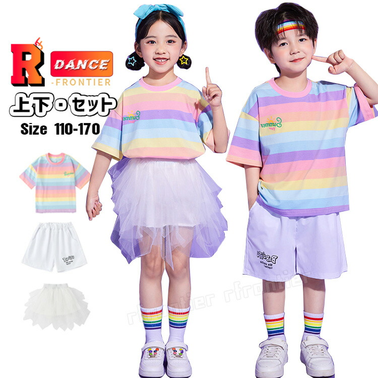 ダンス トップス へそ出し キッズ 女の子 橙 青 黄色tシャツ 紫 白キュロット かっこいい チアダンス衣装 韓国 k-pop衣装 ヒップホップ ジャズダンス 演出服 応援団 イベント110-170