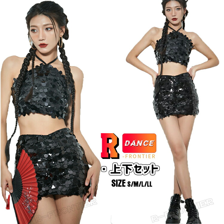 韓国 ダンス衣装 大人 セットアップ ヒップホップ レディース ジャズダンス衣装 演出服 大人衣装 レディースブラック ホワイト シルバー ショート丈 スカート スパンコール