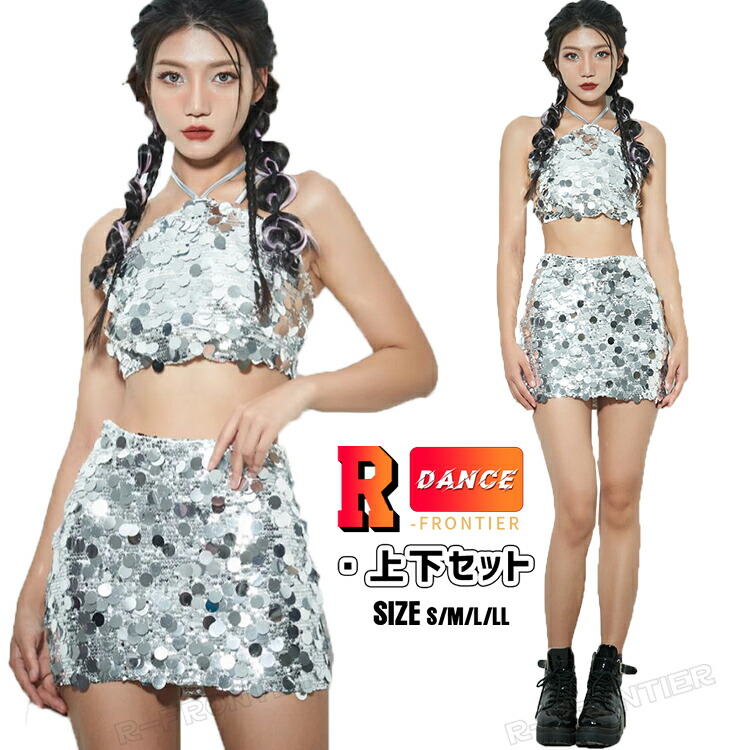 韓国 ダンス衣装 大人 セットアップ ヒップホップ レディース ジャズダンス衣装 DS演出服 大人衣装 レディースブラック ホワイト シルバー ショート丈 スカート スパンコール