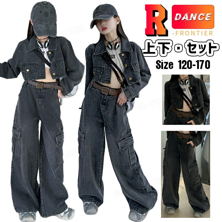 キッズダンス衣装 デニムセット ジャズダンス ガールズ 韓国 ヒップホップ hiphop 演出服 応援団 練習着 120-170cm