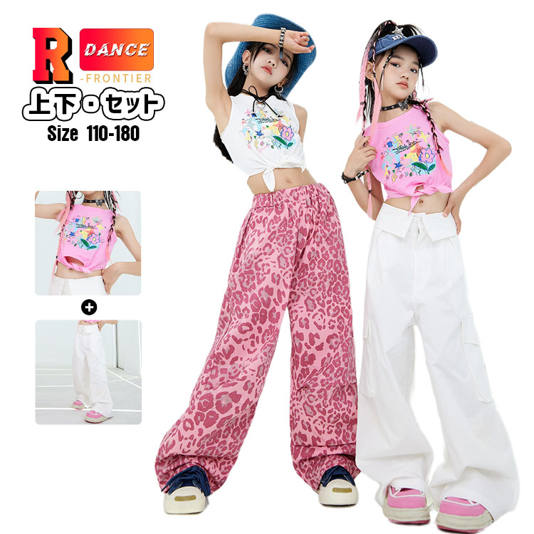 ダンス トップス へそ出し キッズ 白パンツ 女の子 かっこいい タンクトップ 袖なし ヒップホップ 韓国 k-pop衣装 ワイドパンツ ジャズダンス 演出服 応援団 イベント110-180cm
