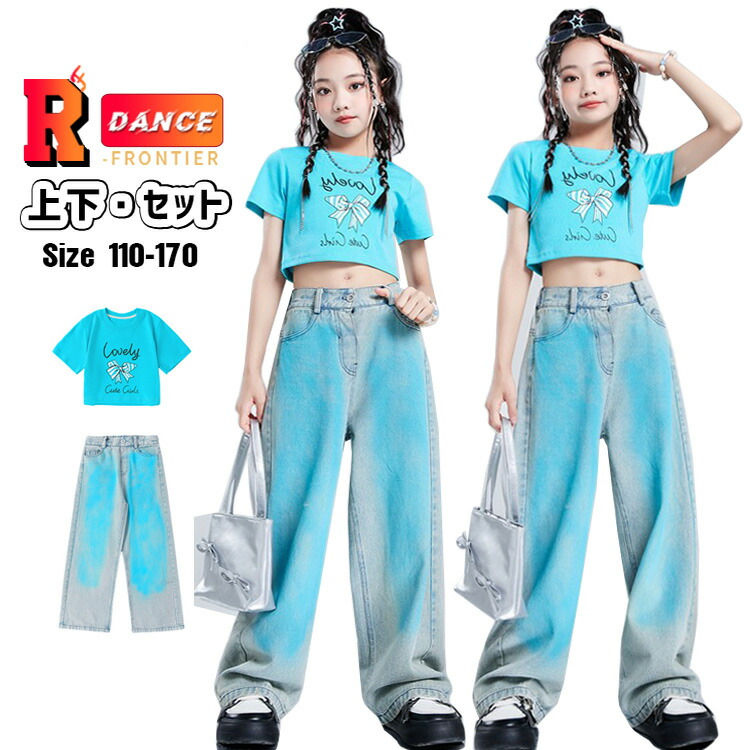 キッズ ダンス衣装 韓国 かっこいい デニム トップス 青 パンツ カーゴ服 女の子 男の子 演出服 ジュニア 子供 ダンスウエア ダンス発表会