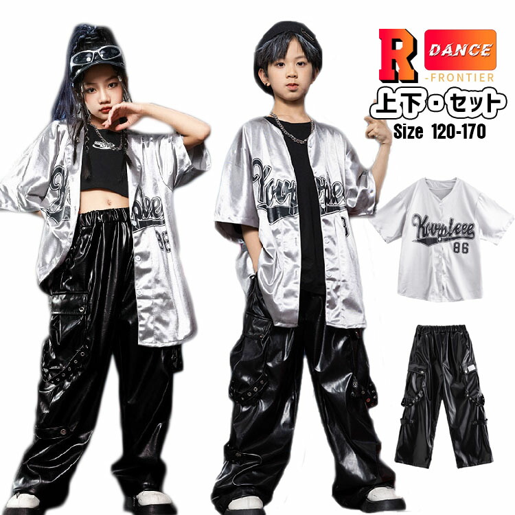 ベースボールシャツ キッズダンス衣装 セットアップ 女の子 男の子 ヒップホップ レザーパンツ かっこいい ワイドパンツ 韓国 -衣装 ジャズダンス 演出服 応援団 イベント110-180