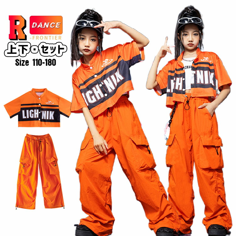 オレンジ ダンス衣装 ヒップホップ キッズ 女の子 へそ出し トップス セットアップ 橙パンツ ヒップホップ 韓国 -衣装 ジャズダンス 演出服 応援団 イベント110-180