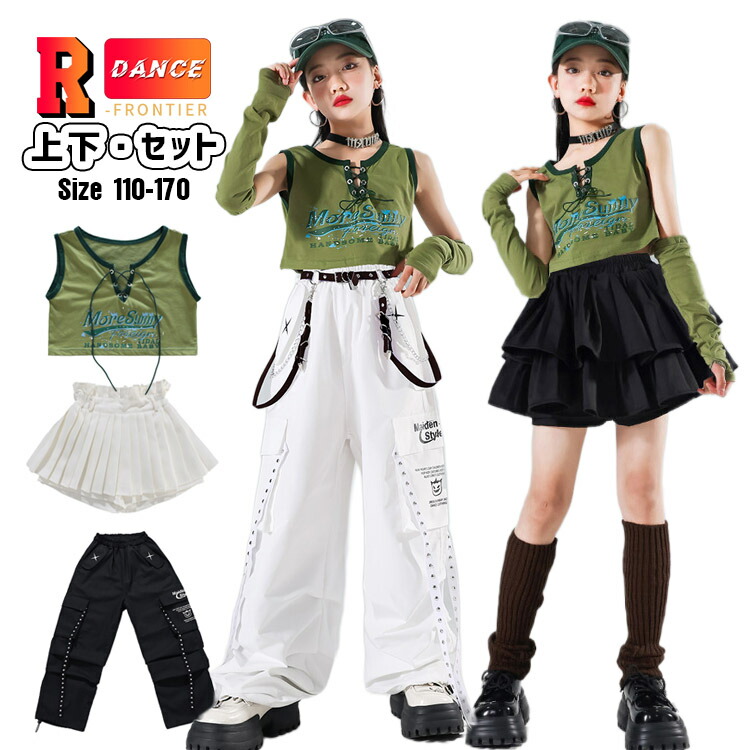 キッズ ダンス衣装 セットアップ へそ出し トップス 女の子 白パンツ かっこいい キュロット チアダンス 韓国 -衣装 ヒップホップ ジャズダンス 演出服 応援団 イベント110-170