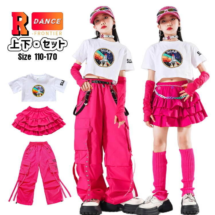 キッズダンス衣装 セットアップ ローズパンツ 女の子 かっこいい スカート ヒップホップ ワイドパンツ チアダンス 韓国 -衣装 ジャズダンス 演出服 応援団 イベント110-170