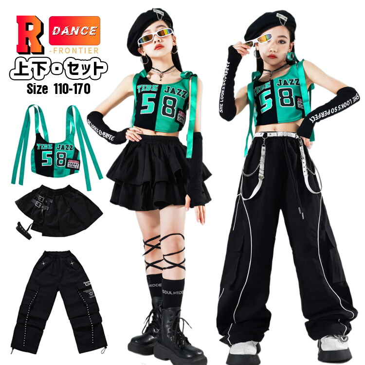 キッズダンス衣装 セットアップ 黒パンツ 女の子 かっこいい 黒スカート ヒップホップ ワイドパンツ チアダンス 韓国 -衣装 ジャズダンス 演出服 応援団 イベント110-170