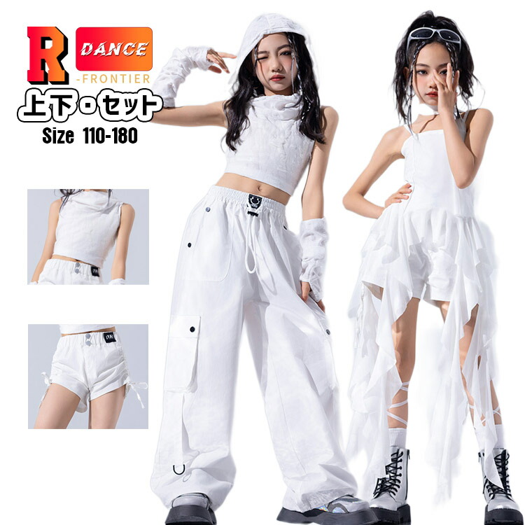 キッズダンス衣装 セットアップ 白パンツ 女の子 かっこいい へそ出し トップス ヒップホップ 短パンツ チアダンス 韓国 -衣装 ジャズダンス 演出服 応援団 イベント110-180