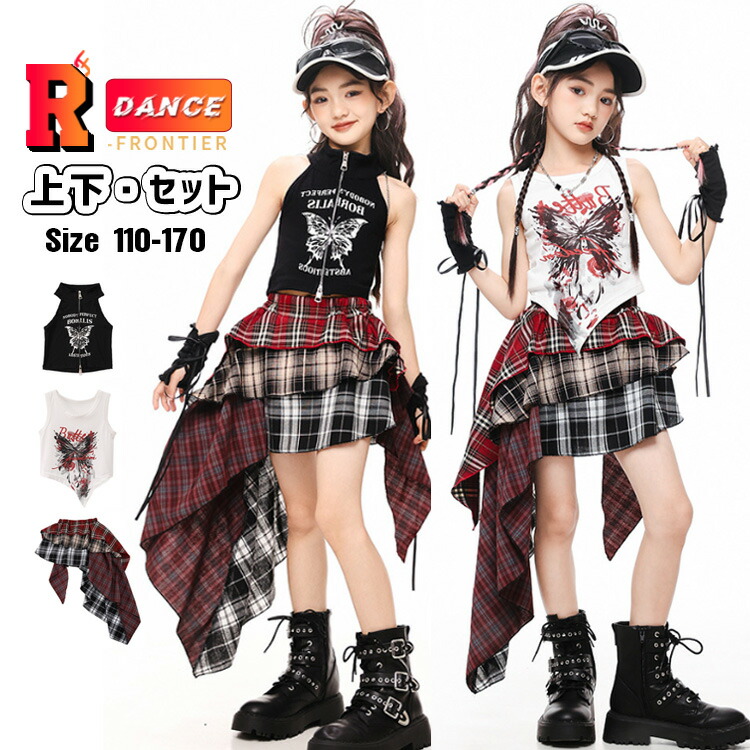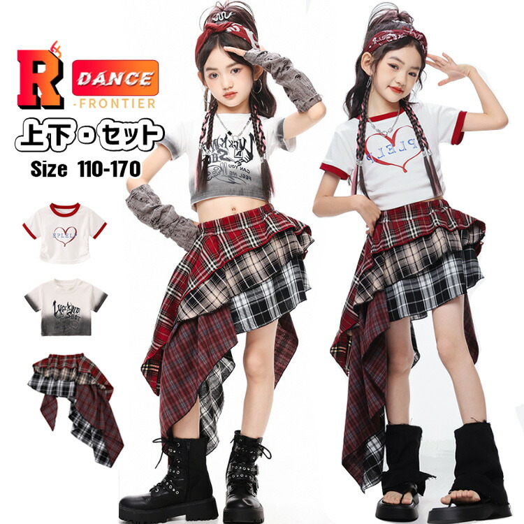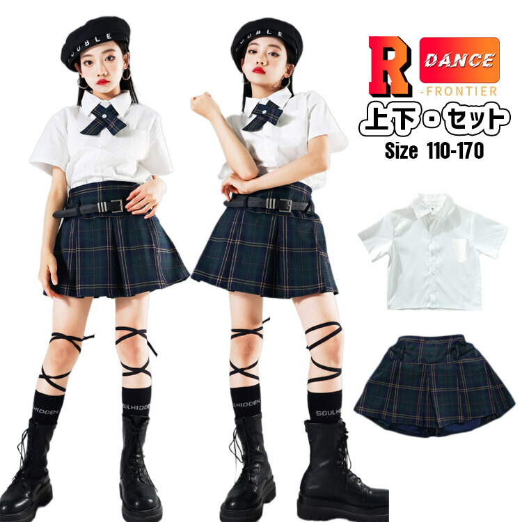 キッズダンス衣装 セットアップ 白シャツ チェック柄スカート 女の子 かっこいい チアダンス 韓国 -衣装 ヒップホップ ジャズダンス 演出服 応援団 イベント110-170