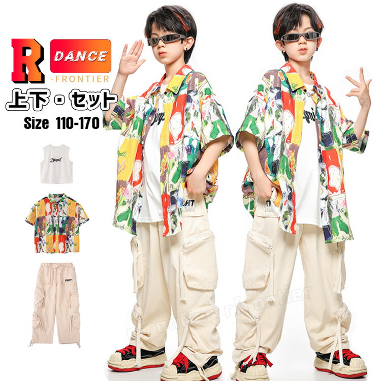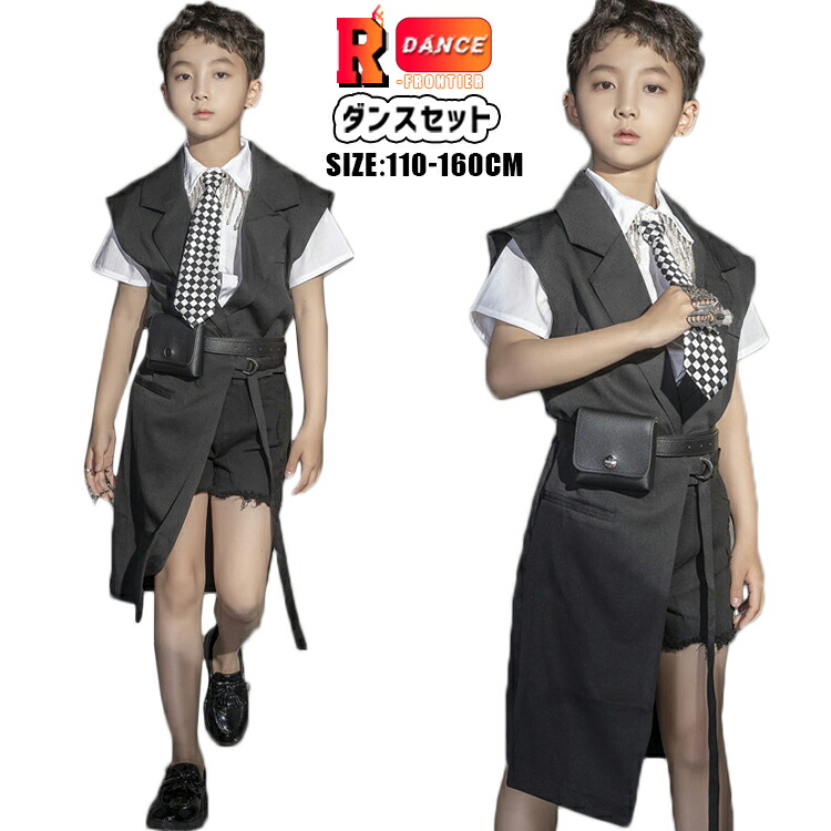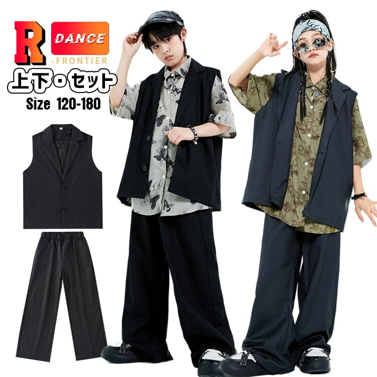 花柄シャツ ダンス衣装 スーツ キッズ ヒップホップ 黒 セットアップ 女の子 かっこいい 男の子 ベスト 黒 ジャズダンス ジュニア 韓国 -衣装 団体 イベント 120-18