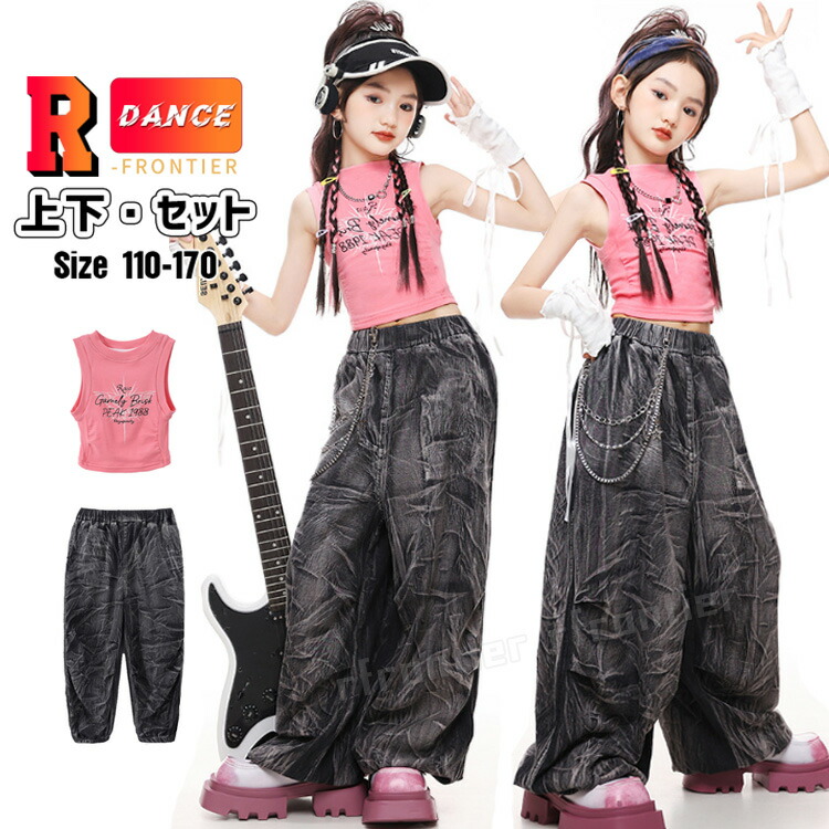 ダンス衣装 キッズ パンツ キッズ キッズ ダンス 衣装 セットアップ - 衣装 ダンスセット ジャズ ダンス衣装 目立つ 女の子 110 120 130 140 150 160