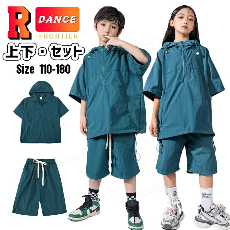 運動風 ダンスセット ダンス衣装 キッズ セットアップ 半袖 パーカー ハーフパンツ ジャズダンス 韓国 k-pop ヒップホップ hiphop 演出服 110-180cm
