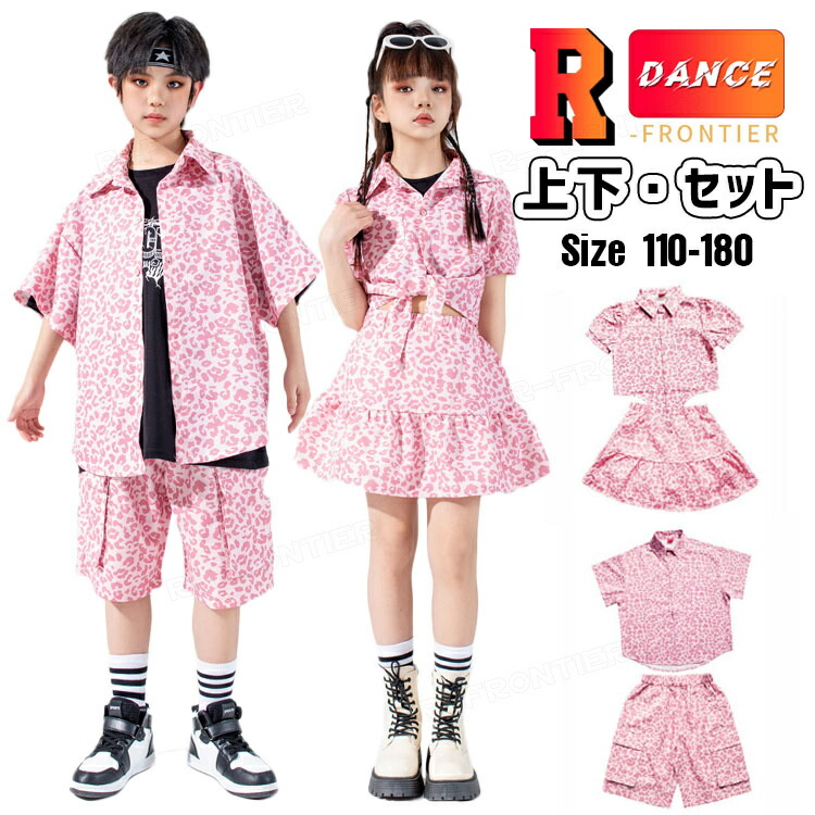 ピンク ヒョウ柄 ダンス衣装 キッズ セットアップ トップス スカート 柄シャツ ハーフパンツ ジャズダンス 韓国 ヒップホップ hiphop 演出服 110-180cm