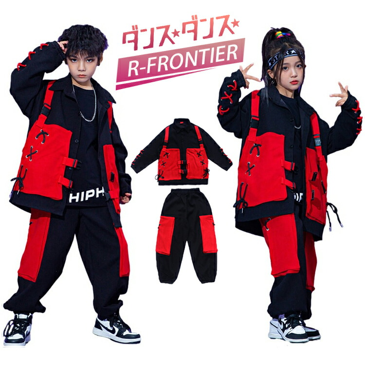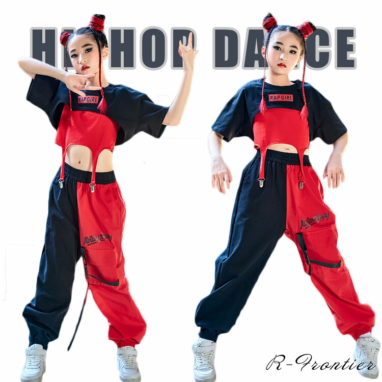 ダンス衣装 赤 黒 ヒップホップ 女の子 へそ出し トップス セットアップ かっこいい ジャズダンス ジュニア 韓国 団体 HIPHOP 演出服 イベント 発表会 120-170cm