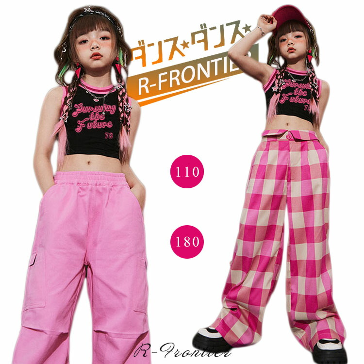 キッズ ダンス衣装 チェック柄パンツ ヒップホップ 女の子 セットアップ へそ出し トップス 韓国 -衣装 かっこいい ジュニア 子供 イベント 発表会 演出服 応援 110 1