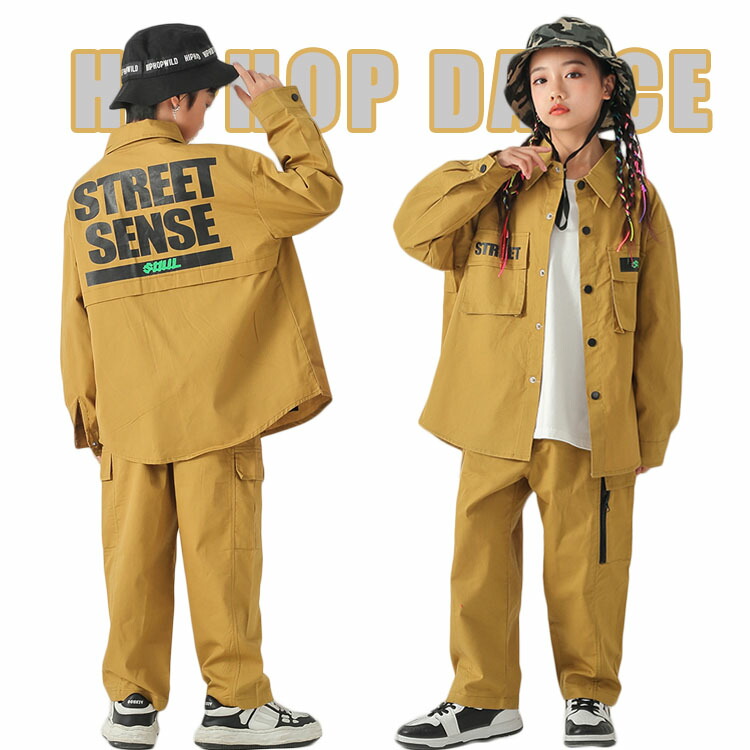 キッズダンス衣装 セットアップ カーキパンツ かっこいい 女の子 男の子 ヒップホップ 長袖 韓国 団体 HIPHOP ダンス衣装 イベント 110 120 130 140 150 160 170 1