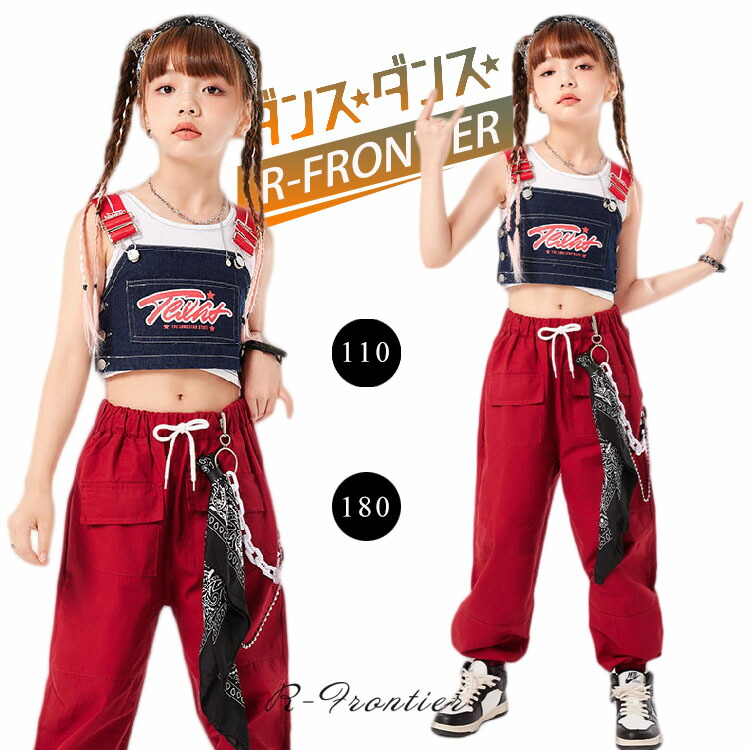 キッズ ダンス 衣装 セットアップ へそ出し トップス 女の子 赤 パンツ ヒップホップ 韓国 かっこいい 演出服 ジュニア 子供 HIPHOP イベント 発表会 演出服 応援 110 180