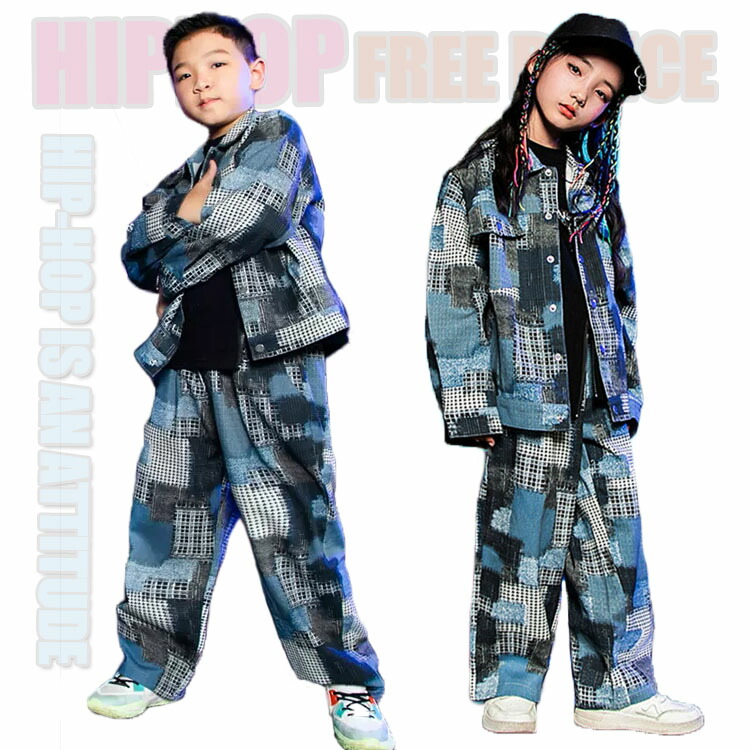 キッズ ダンス 衣装 セットアップ ヒップホップ デニムパンツ デニム ジャケット ジーンズ 長袖 トップス パンツ セット HIPHOP ジャズダンス 110 120 130 140 150 160